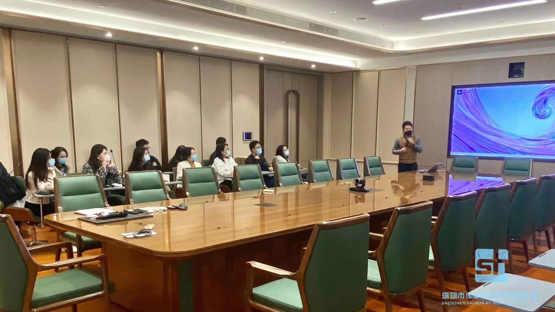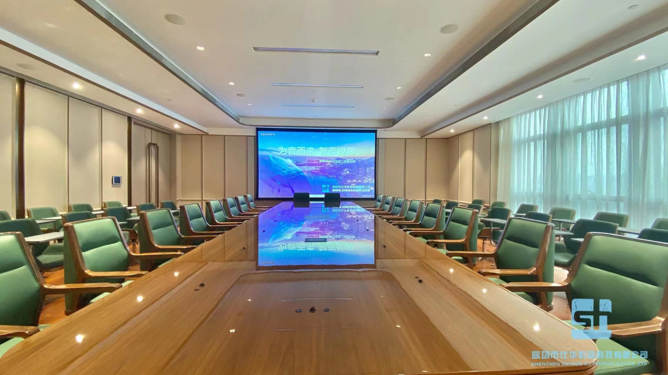 深圳市(shì)金(jīn)融科(kē)技(jì)城(chéng)智能(néng)化(huà)控制(zhì)會(huì)議(→yì)系統 1.簡易方便穩定可(kě)靠,開(kāi)放(fàng)及擴展性強; 2.專業(yè)領域設備專業(yè)集成,多(duō)種會(huì)議(yì')模式自(zì)由一(yī)鍵切換; NEC/MAXHUB/APPLE/HUAK