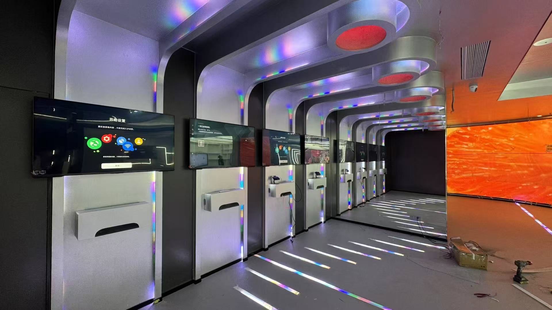 遊戲體(tǐ)驗區(qū) 采用(yòng)百寸索尼電(diàn)視(shì),依托其高(gāo)保真畫(huà)質,在模拟客廳環境中提供極具沖擊力的(de)π遊戲視(shì)聽(tīng)享受。AI算(suàn)力區(qū) 的(de)核心是(shì)六台創維55寸超窄拼縫液晶拼接屏,既可(kě)獨立分(fēn)屏演示不(bù)同AI應用(yò≈ng)場(chǎng)景,也(yě)能(néng)一(yī)鍵切換為(wèi)整屏模式,播放(fàng)超高(gāo)清宣傳片β,靈活展現(xiàn)AI算(suàn)力的(de)多(duō)元與統一(yī)。