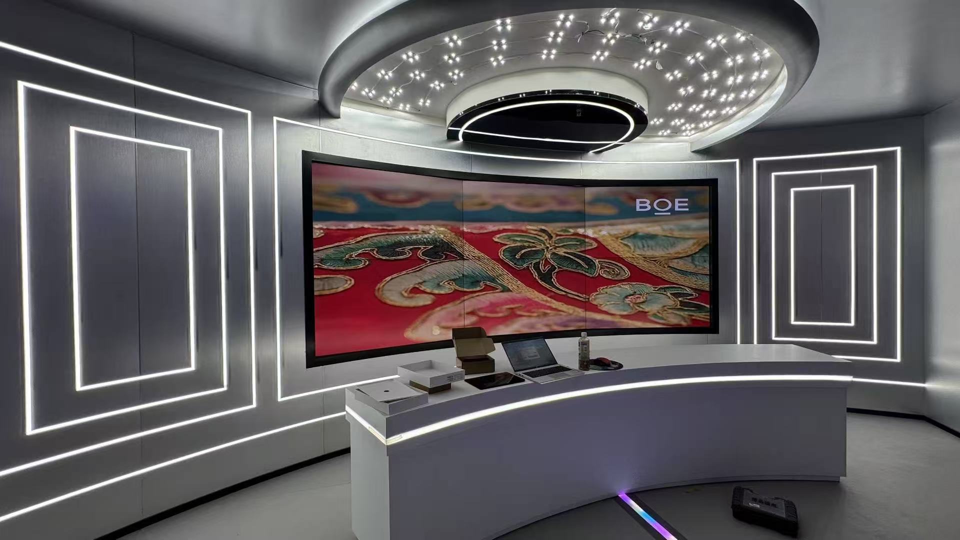 核心裝置區(qū) 采用(yòng)兩台55寸OLED屏幕上(shàng)下(xià)疊裝,OLED的(de)自(zì)發光(guāng)特性确保了(le)色彩的(de)純粹 與深邃,無論是(shì)分(fēn)屏數(shù)據對(duì)比還(hái)是(shì)整屏形象展示,都(dōu)極具視(shì)覺張力。雲工(gōng)作(zuò)站(zhàn) 則π将高(gāo)配服務器(qì)與75寸創維大(dà)屏結合,實時(shí)演示雲端算(suàn)力的(de)實際應用(yòng)流程。