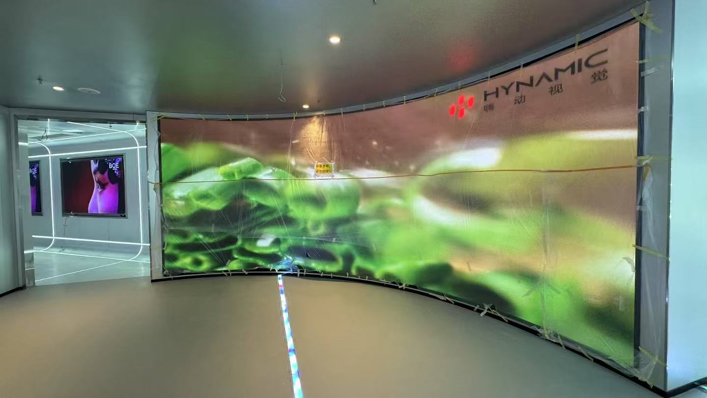 硬件(jiàn)展示區(qū) 創新性地(dì)将兩台65寸觸控一(yī)體(tǐ)機(jī)與實體(tǐ)模型結合,訪客可(kě)通(tōng)過互動觸控深入了(le)解産品細ε節,實現(xiàn)了(le)從(cóng)“觀看(kàn)”到(dào)“探索&rdquo®;的(de)體(tǐ)驗升級。展廳視(shì)覺氛圍由 環形/圓形軟模組LED 與 13平米的(de)P1.5弧形LED大(dà)屏 共同營造,前者以動态數(shù→)字雨(yǔ)等效果增強科(kē)技(jì)感,後者則以震撼畫(huà)面和(hé)動态數(shù)據流,成為(wèi)展示企業(yè)實力的(de)視(shì)覺中心。