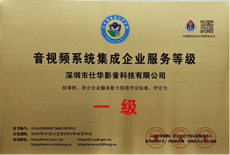 仕華科(kē)技(jì)喜獲《音(yīn)視(shì)頻(pín)系統集成企業(yè)服務等級證書(shū)一(yī)級》
