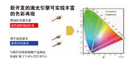 突破性的(de)PT-SRQ50KC采用(yòng)了(le)新型紅(hóng)藍(lán)雙色激光(gu≤āng)技(jì)術(shù),實現(xiàn)更鮮豔的(de)紅(hóng)色和(hé)更真實的(de)藍(lán)色。新型激光(guāng)引擎色域範圍是(shì)£松下(xià)傳統PT-SRQ32KC色域的(de)114%,實現(xiàn)逼真的(de)色彩表現(xiàn)。