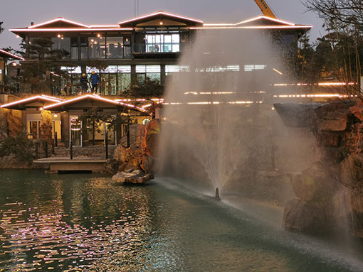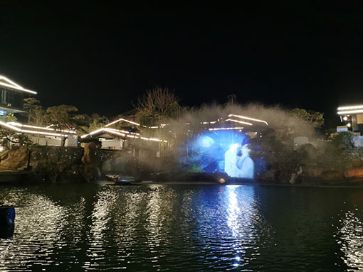 被譽為(wèi)“沂蒙桃花(huā)源、臨沂後花(huā)園”的(de)茶芽山(shān),孤峰秀出、茶香四溢£。這(zhè)裡(lǐ)不(bù)僅擁有(yǒu)深厚的(de)曆史文(wén)化(huà)底蘊,更孕育了(le)深厚的(de)禅茶文(wén)化(h∞uà),如(rú)今這(zhè)片紅(hóng)色熱(rè)土(tǔ)迎來(lái)了(le)蝶變。為(wèi)建設“茶山(shān)國(guó)家(jiā)鄉(xiāng≤)村(cūn)公園”,茶芽山(shān)田園綜合體(tǐ)項目應運而生(shēng),結合山(shān)、水(shuǐ)、林(lín)、田、湖(hú)生(shēng)态保®護修複工(gōng)程,打造含田園農(nóng)業(yè)、茶芽文(wén)旅、康複醫(yī)療、樂(y₹uè)活宜居和(hé)花(huā)果樂(yuè)園五大(dà)闆塊,形成地(dì)域鮮明(míng)✘的(de)新型田園綜合體(tǐ)。與此同時(shí),10台NEC哈勃系列激光(guāng)投影(yǐng)機(jī)應用(yòng)在此,通(tōng)過流光(guāng)溢彩的(d"e)投影(yǐng)秀,在池塘堤岸和(hé)水(shuǐ)幕上(shàng)投射出美(měi)輪美(měi)奂的(de)光(guāng)影(yǐng₹)故事(shì),為(wèi)遊客講述著(zhe)茶芽山(shān)的(de)曆史文(wén)化(huà)和(hé)禅茶傳說(shuō)。
