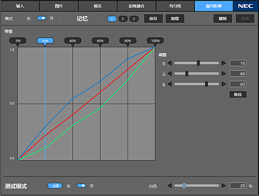 在做(zuò)多(duō)機(jī)融合、疊加時(shí),客戶可(kě)能(néng)會(huì)選用(yòng)多(duō)台同一(yī)型号産品或多(d∞uō)台不(bù)同型号産品,最怕遇到(dào)的(de)是(shì)某一(yī)台設備出現(xiàn)了(le)色彩的(de)不(bù)一(yī)緻,影(yǐng)響了(le)整體(tǐ)顯示效果,調試也(yě)非常的(de)困難。為(wèi)了(le)避免這(zhè)種後顧→之憂,PX2000UL+可(kě)以對(duì)多(duō)機(jī)中的(de)某一(yī)台設備,或一(yī)台設備中•的(de)某一(yī)塊區(qū)域進行(xíng)色彩精确校(xiào)準,快(kuài)速幫客戶解決問(wèn)題、對(duì)症下(xià)藥。而在影(yǐng)響一(yī)緻÷性效果的(de)原因不(bù)是(shì)偏色而是(shì)灰階時(shí),PX2000UL+同樣可(k₩ě)以調整不(bù)同層次的(de)Gamma曲線,對(duì)RGB分(fēn)色調校(xiào),從(cóng)而保證畫(huà)面色彩的(de)一(yī)緻性。
