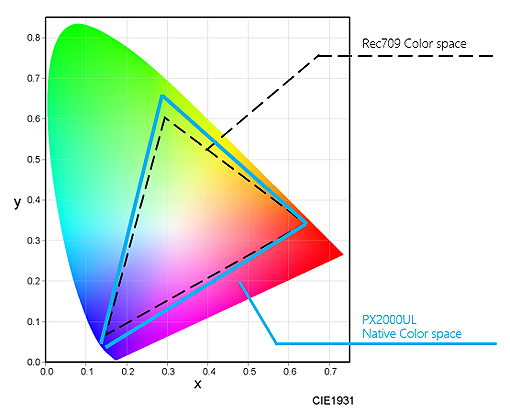 PX2000UL+ 實現(xiàn)接近(jìn)Rec.709的(de)大(dà)色域