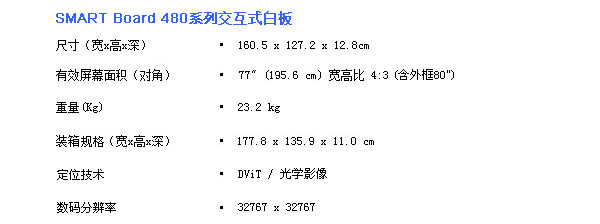SMART Board 480 交互式白(bái)闆 是(shì)SMART 公司2011 年(nián)全新推出的(de)一(yī)款超高(gāo)性能(né±ng)價格比的(de),适用(yòng)于中國(guó)普通(tōng)教室的(de)交互式白(bái)闆。它同時(shí)具備了(le)筆(bǐ)和(hé)手指觸控的(de)功能(néng),并且♠在速度、精準度和(hé) 堅固度上(shàng)有(yǒu)了(le)大(dà)幅度的(de)提高(gāo)。 |
